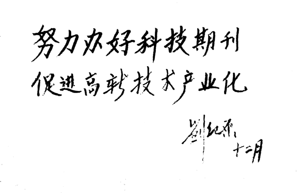 原十四、十五届中央委员会委员、中国航天工业总公司总经理刘纪原题词